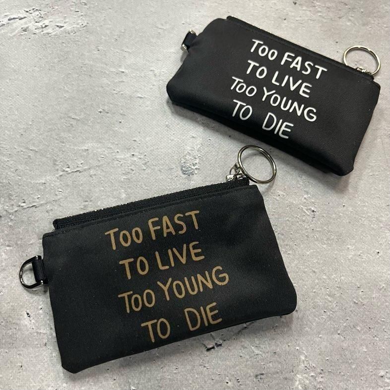 【 ミニマム ポーチ / Too Fast To Live Too Young To Die デザイン001 ( ブラック×オーカー ) 】