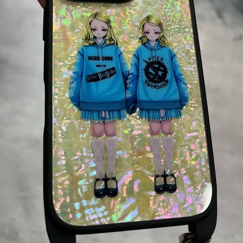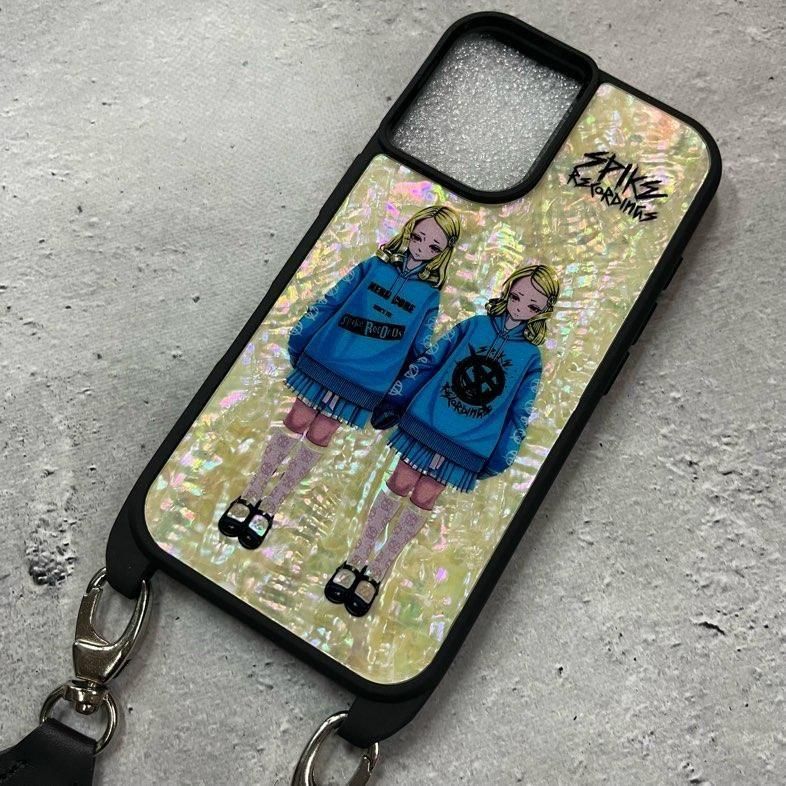 YOICHIRO氏が描くTwinsイラストを樹脂プレートに施し、天然貝 (日本鮑)の真珠層で作り出された素材に合わせ仕上げたiPhoneケースです。