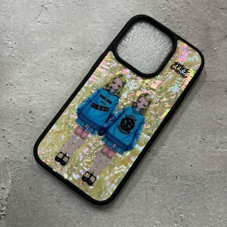 YOICHIRO氏が描くTwinsイラストを樹脂プレートに施し、天然貝 (日本鮑)の真珠層で作り出された素材に合わせ仕上げたiPhoneケースです。