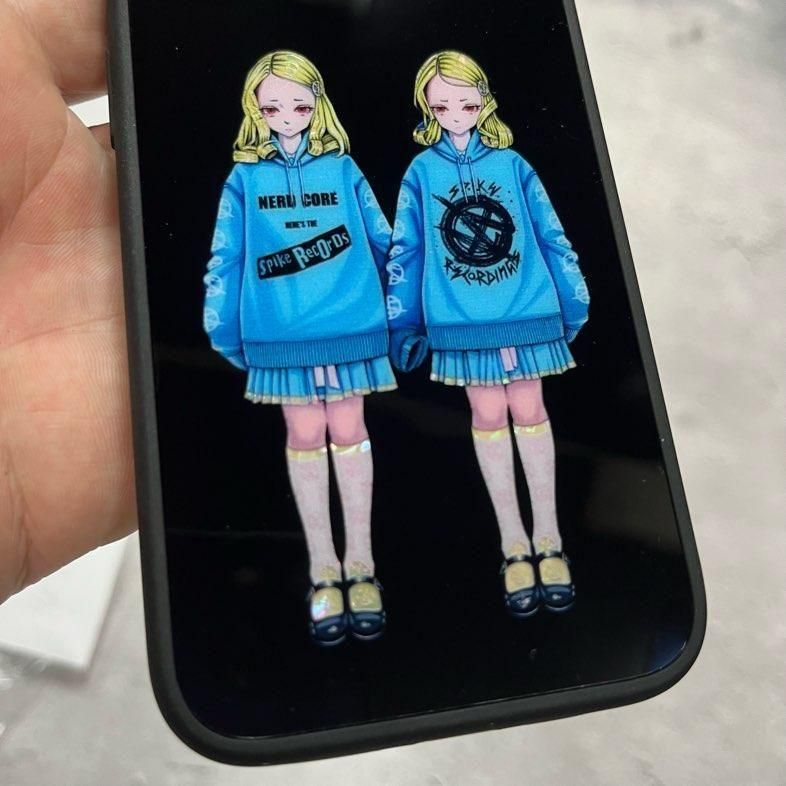 YOICHIRO氏が描くTwinsイラストを樹脂プレートに施し、天然貝 (日本鮑)の真珠層で作り出された素材に合わせ仕上げたiPhoneケースです。