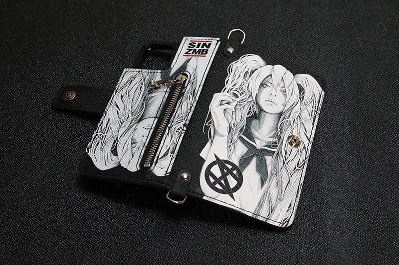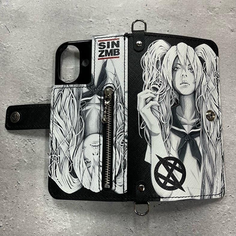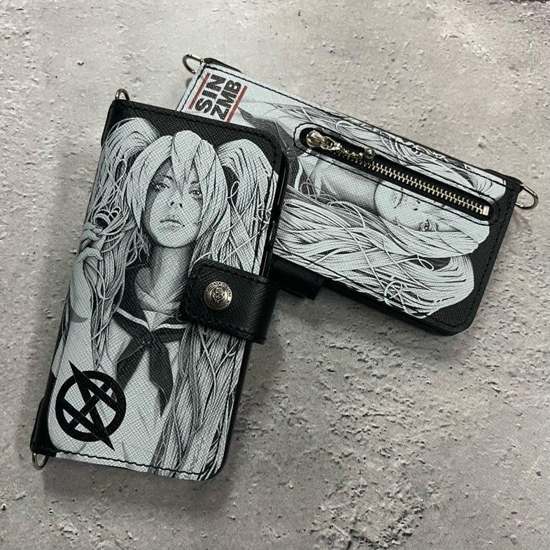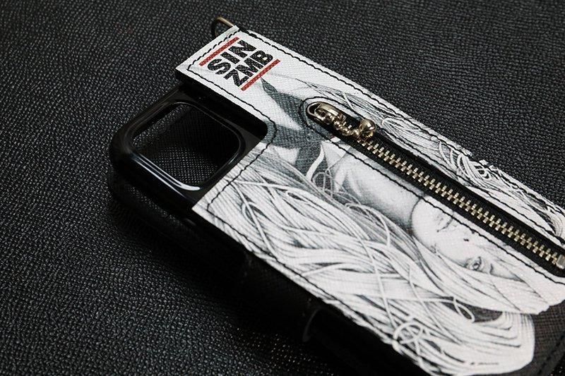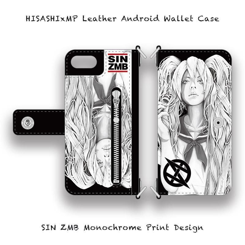 【 HISASHIxMP Leather Android Wallet Case / SIN ZMB Monochrome Print Design 】