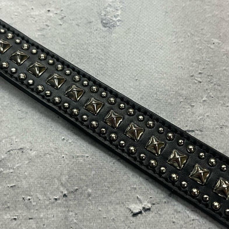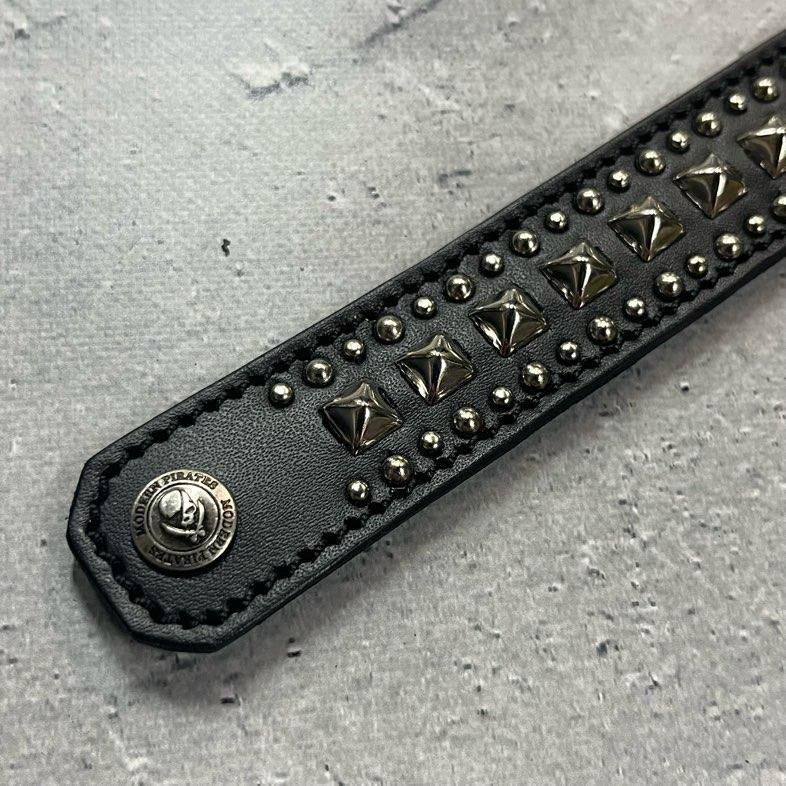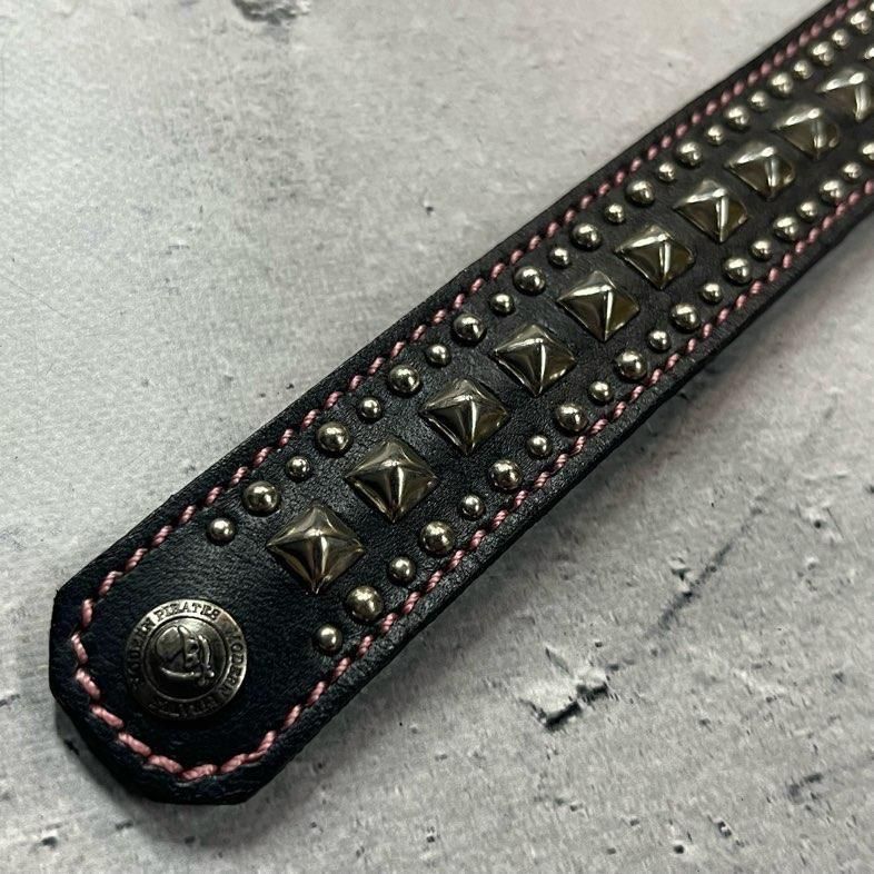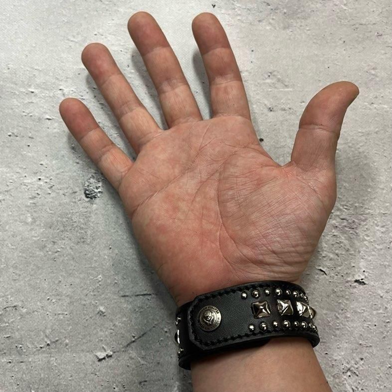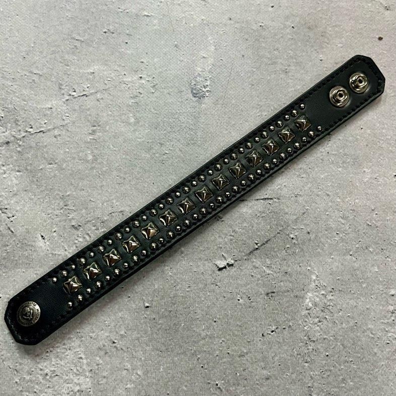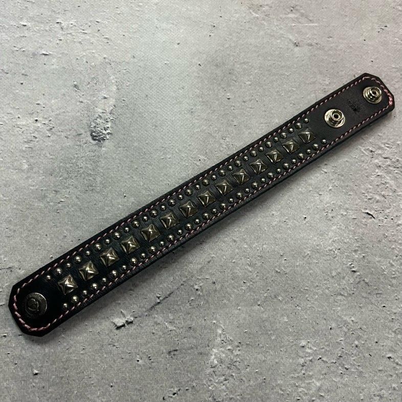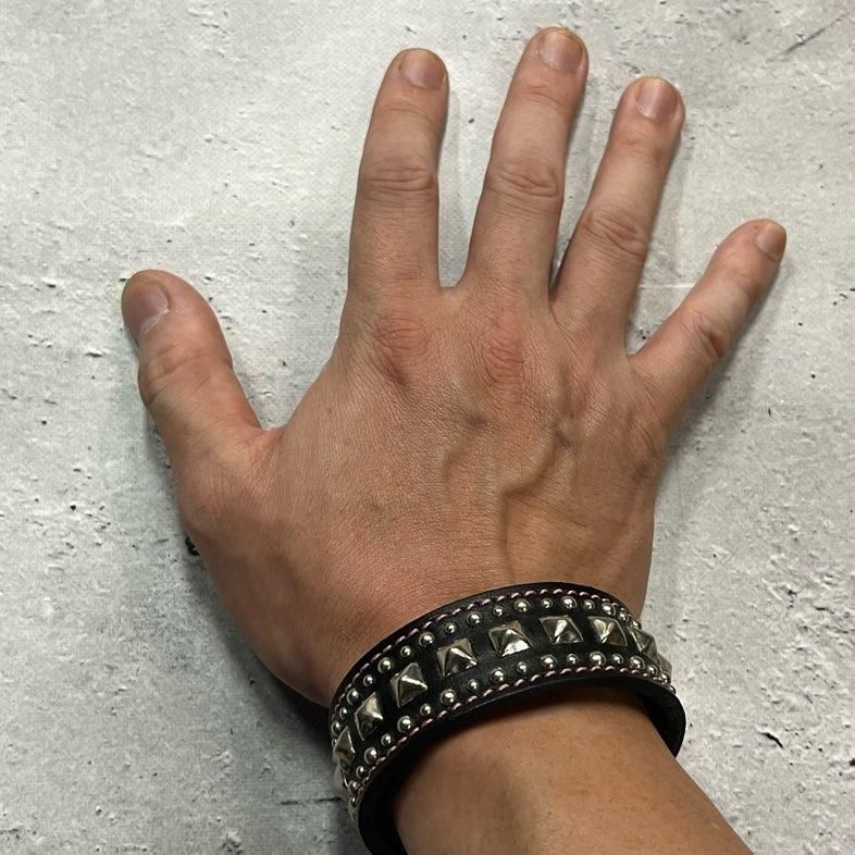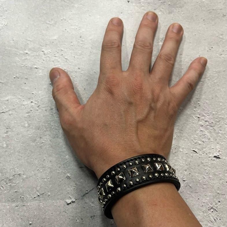 【 24mm Width Leather Bracelet / Center Pyramid & Side Round Spots Design 】