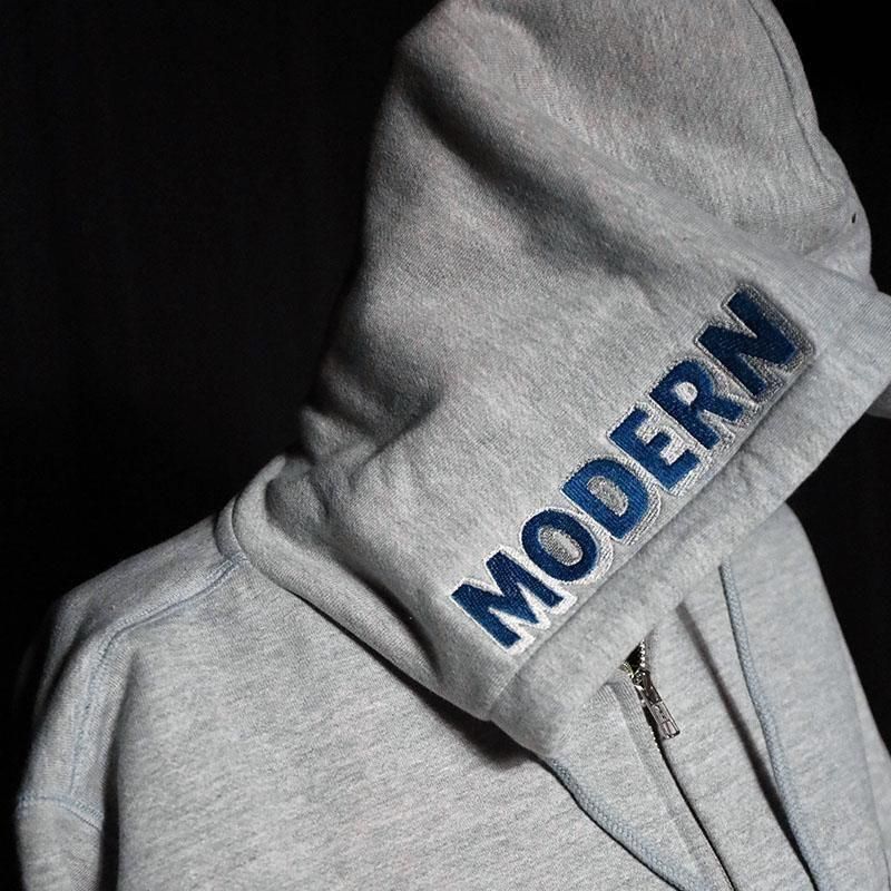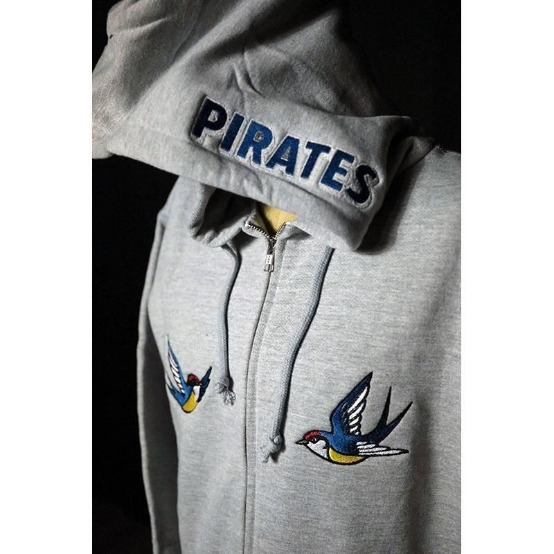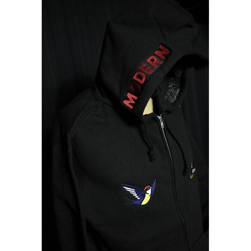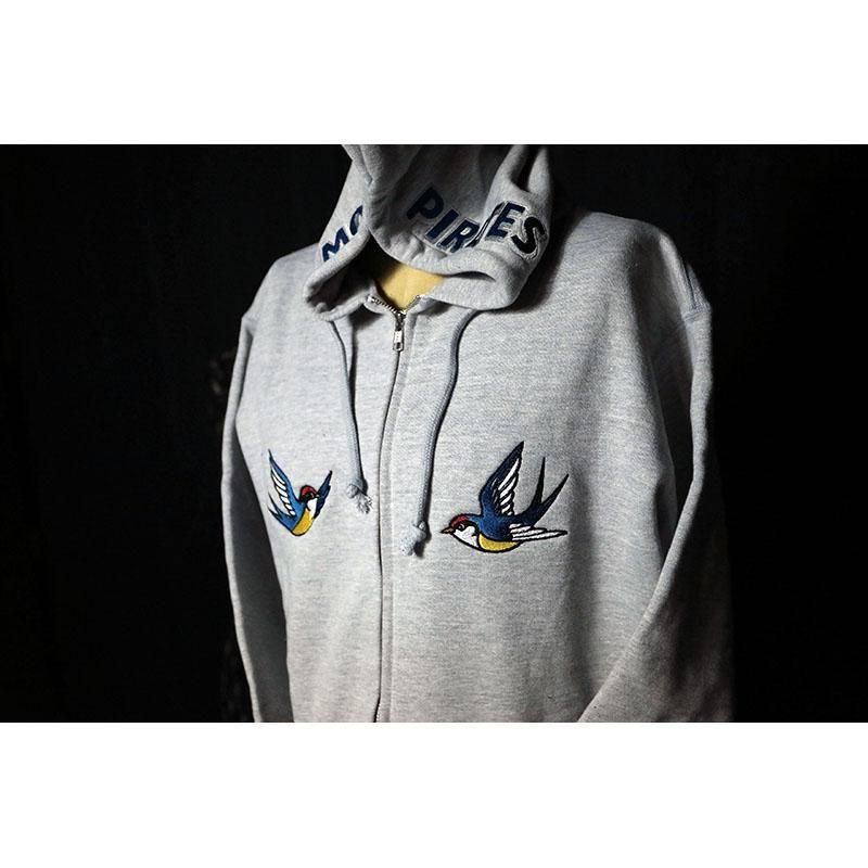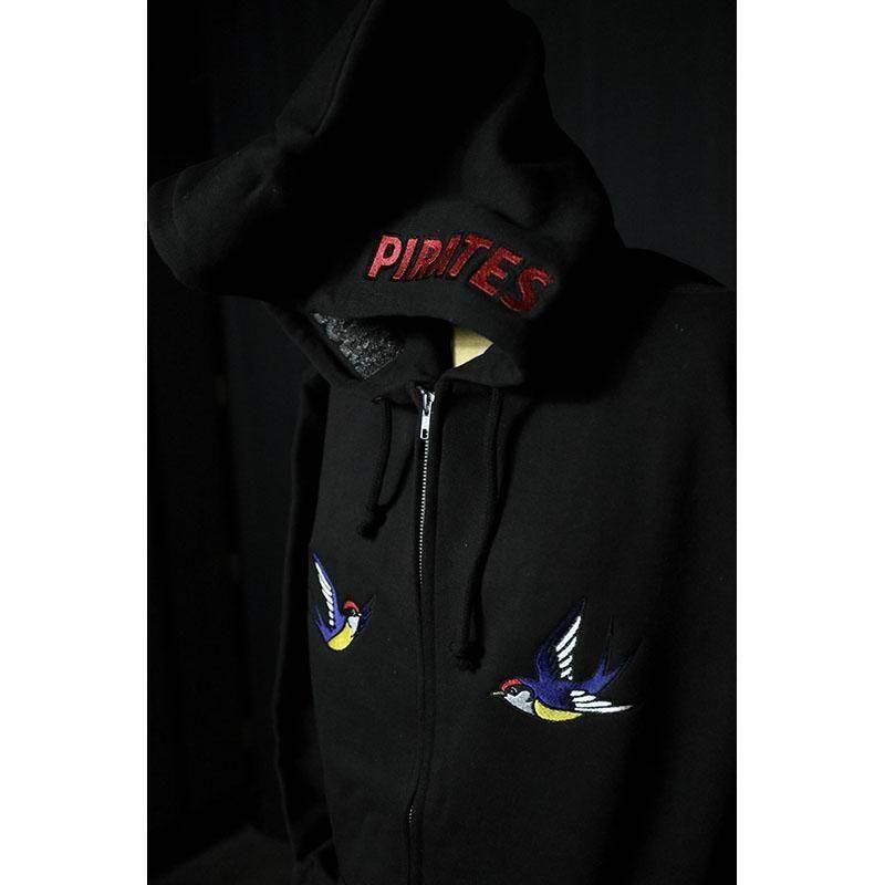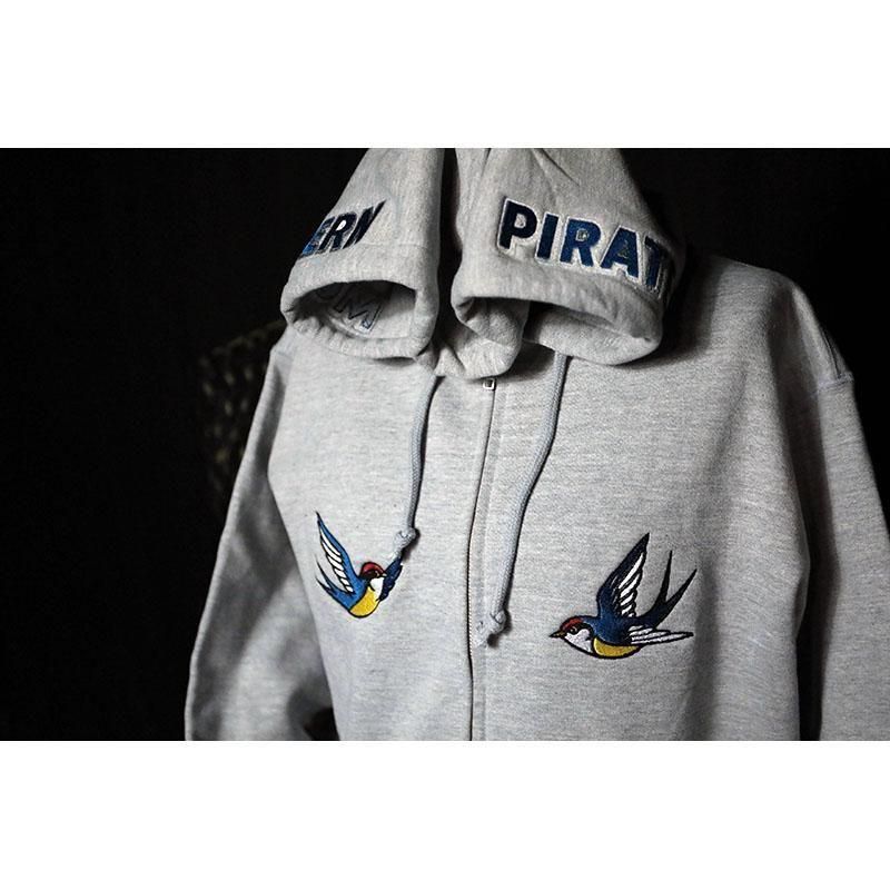 フード両サイドにMODERNPIRATESのロゴ、左右の胸にSwallowを刺繍しました。