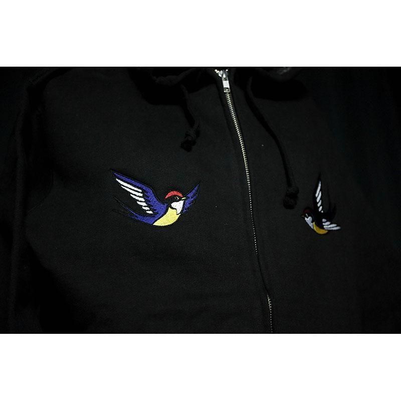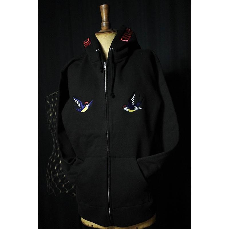 Swallowをデザインを刺繍した12.4ozの保温性に優れた裏起毛フルジップ パーカです。